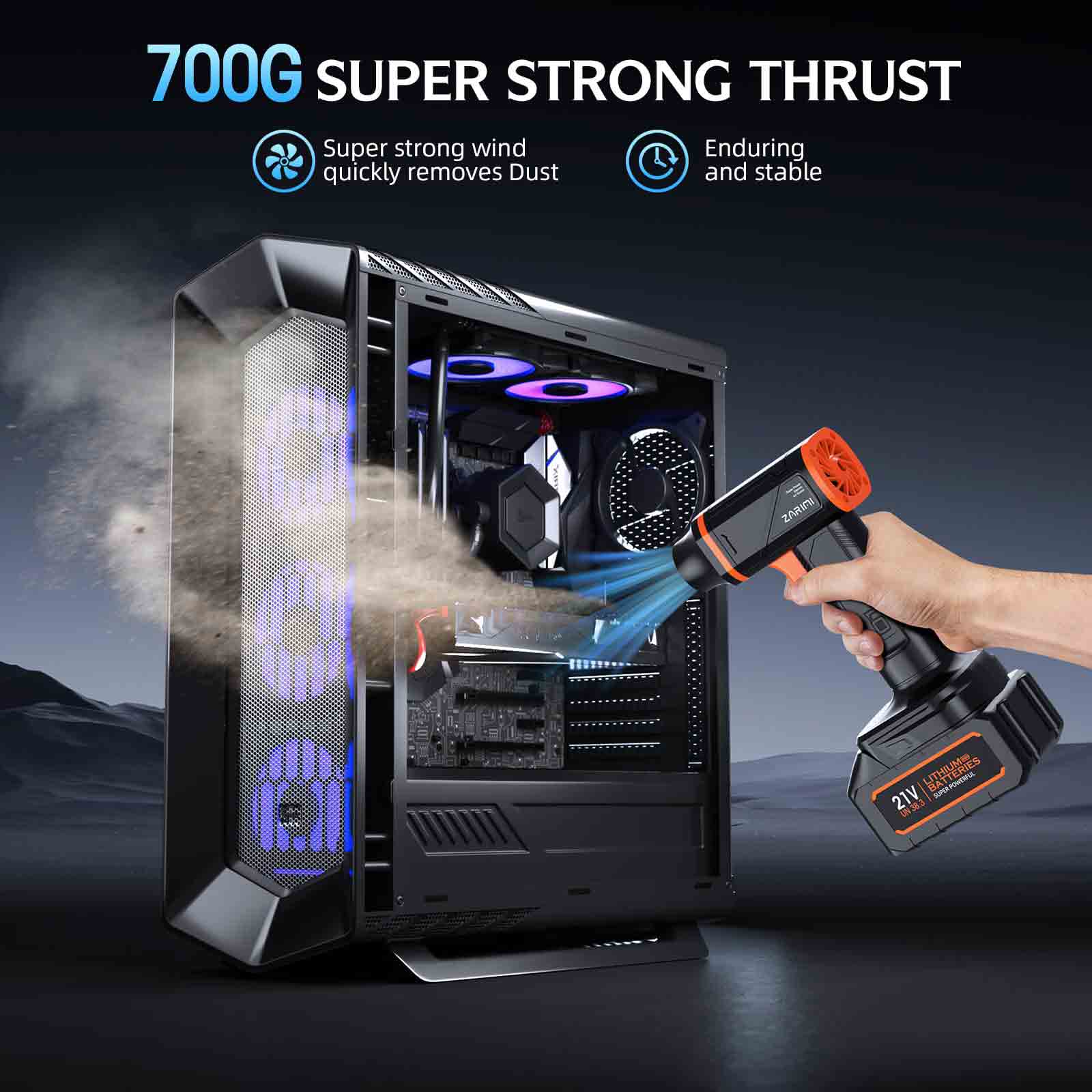 - Powerful Performance:With a 33,0000 RPM brushless motor, this electric air duster delivers an impressive 700g air pressure and peak wind speeds over 200m/s. Say goodbye to canned air and hello to a more efficient cleaning solution. Ideal for compressed air dusters needs, it’s a must-have pc cleaning kit.