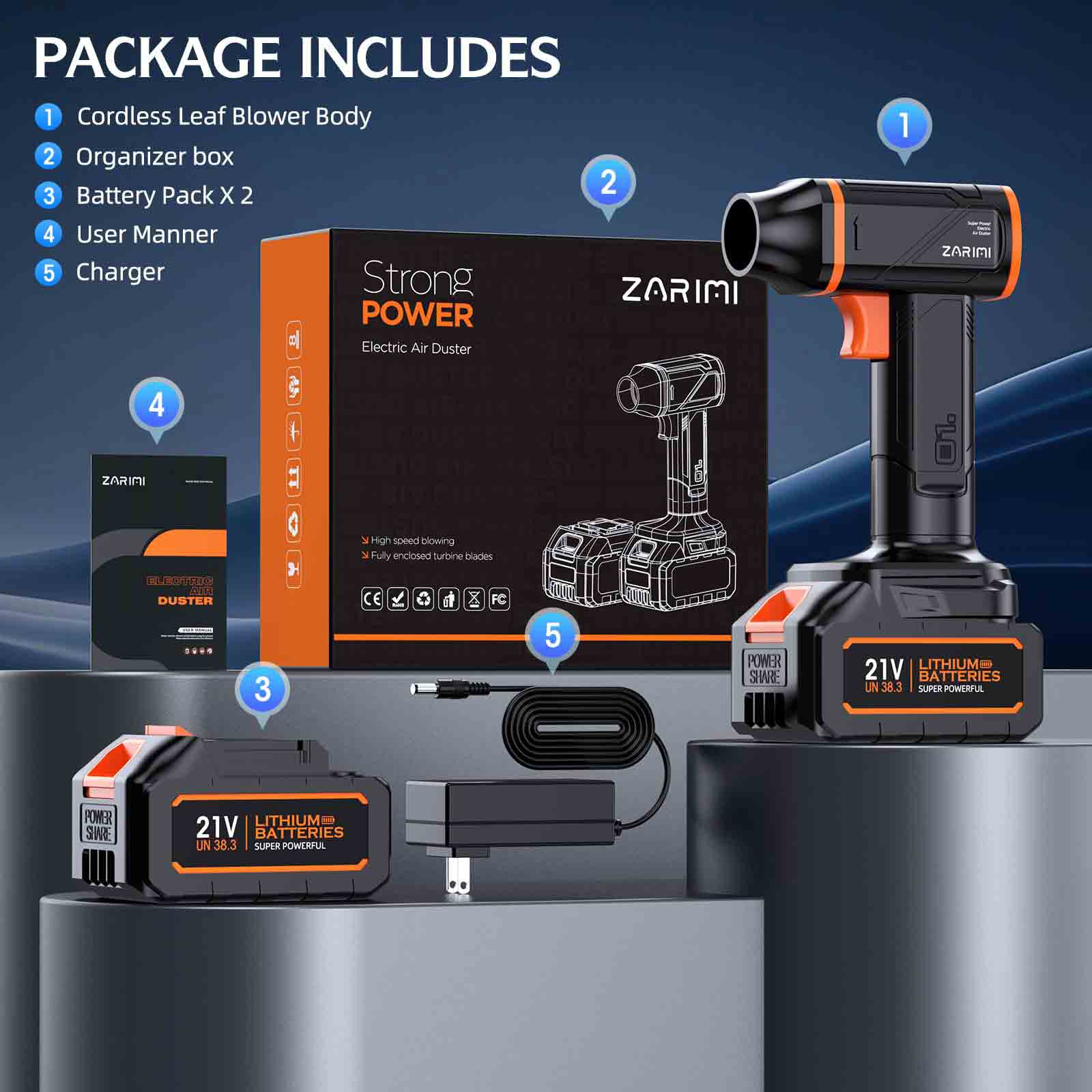 - Long-lasting Battery:Equipped with two 4.0Ah batteries, enjoy extended cleaning sessions without interruptions. Keep your devices spotless with this high-performance air duster.